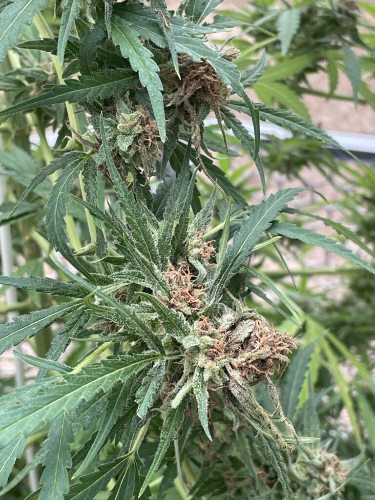 This close to harvest, you don't want harsh chemicals anywhere near your buds. Insecticidal soap works, or very diluted neem oil—but keep it off the buds themselves if you're within a week of cutting. Sometimes the smartest move is just harvesting affected branches early rather than spraying anything questionable.
